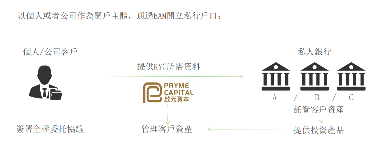 以個人或者公司作為開戶主體,通過EAM開立私行戶口。